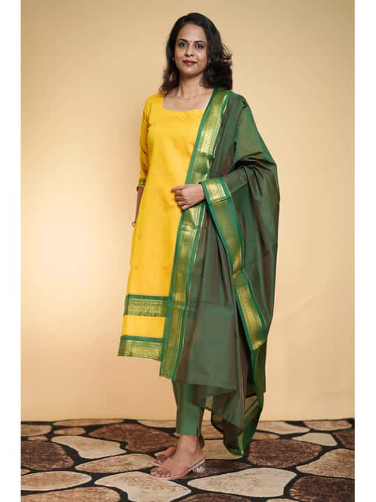 Dark Olive Green Chanderi Silk Kurti Set - SAK019