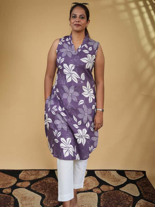 Purple Floral Printed Cotton Kurthi Set SAK312